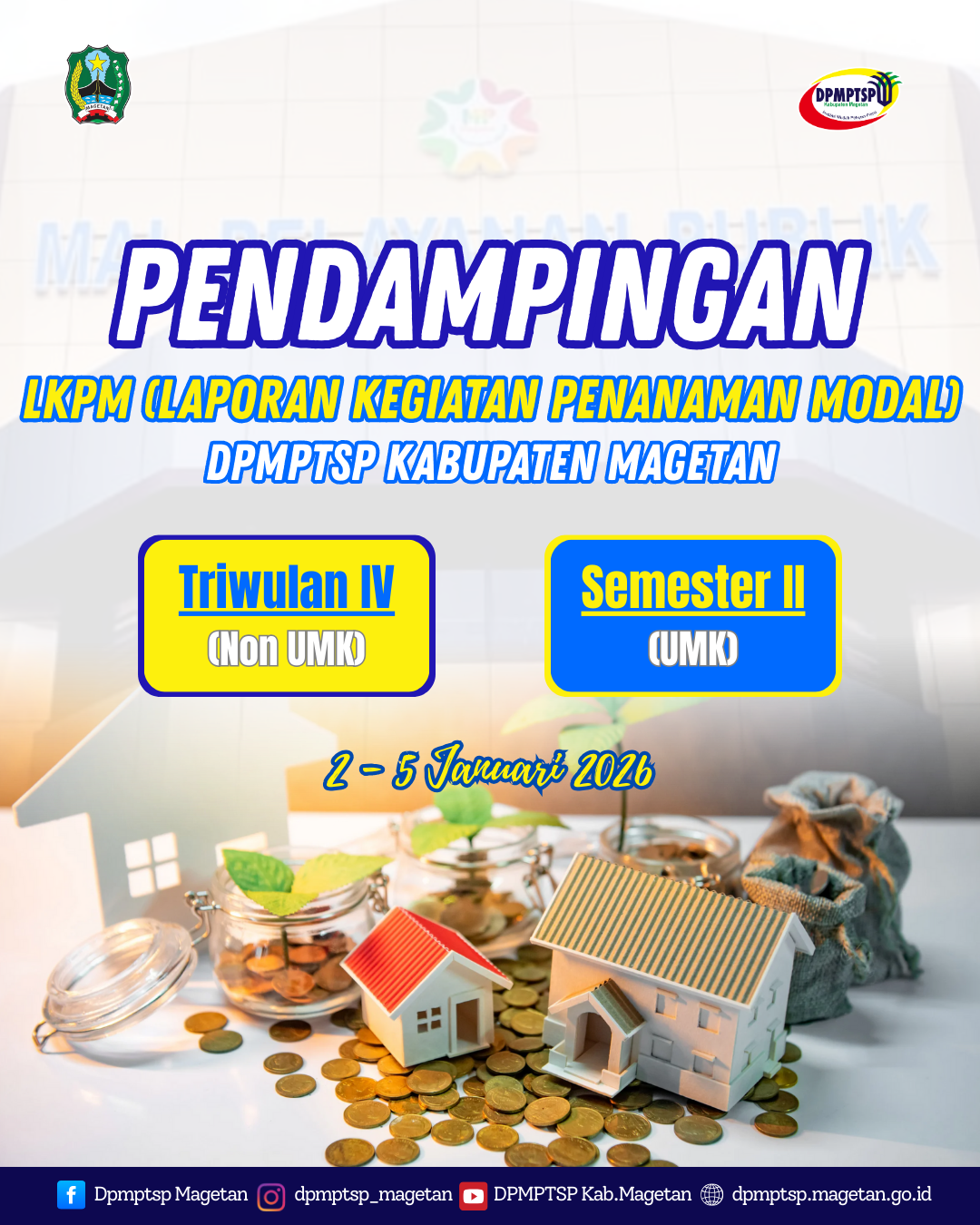 Magetan – Dalam rangka meningkatkan kepatuhan pelaku usaha terhadap kewajiban pelaporan kegiatan penanaman modal, Dinas Penanaman Modal dan Pelayanan Terpadu Satu Pintu (DPMPTSP) Kabupaten Magetan melaksanakan kegiatan Pendampingan Laporan Kegiatan Penanaman Modal (LKPM) pada tanggal 2–5 Januari 2026.
