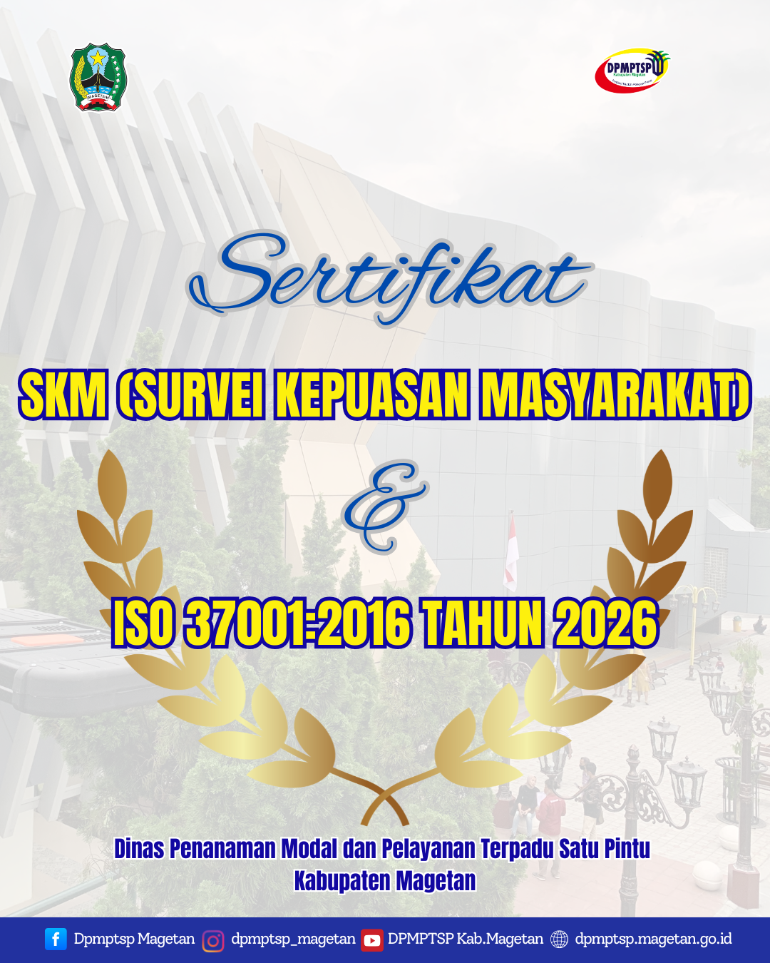 Dengan diraihnya predikat “Sangat Baik” dalam Survei Kepuasan Masyarakat serta sertifikasi ISO 37001:2016, DPMPTSP Kabupaten Magetan menegaskan keseriusannya dalam memberikan pelayanan prima yang profesional, berintegritas, dan berorientasi pada kepentingan masyarakat.